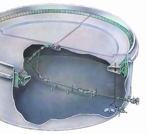 油罐中央排水系統(tǒng)是本公司在國內外同類產(chǎn)品使用經(jīng)驗的基礎上,結合目前國內罐體實際情況新開發(fā)研制的中央排水機構,適用于各種規(guī)格的浮頂罐體的罐頂積水排放。 ZP-DN型中央排水裝置是采用當代國際新技術開發(fā)研制的新一代外浮頂儲罐中央排水裝置。它安裝于罐內,進口與浮盤積水坑內的浮球閥接口連接,出口與儲罐排水口法蘭相接,作用是及時排放浮頂?shù)姆e水。保證浮盤的安全。它是老式排水管的替代產(chǎn)品。 一、主要技術特點: 本產(chǎn)品根據(jù)介質的不同采用材質旋轉接頭結構型式。 1、頂部的旋轉支承固定在浮頂上,底部的旋轉支承固定在油罐底板上。 2、罐底水平面內的管線以水平回轉器連接單個旋轉接頭的結構。 3、連續(xù)的坡形設計杜絕沉積物滯留。 4、旋轉接頭的密封能承受內、外兩個方向的壓力而無泄漏。 5、本結構及其固定裝置不與罐體的內部結構產(chǎn)生干涉。 6、本產(chǎn)品結構合理,密封性能好,使用壽命長,無需維修保養(yǎng)。 二、主要技術參數(shù): 1、產(chǎn)品規(guī)格:DN80、DN100、DN150、DN200、DN250 2、適用范圍:各種規(guī)格外浮頂罐體 3、適用介質:各種油品及化工介質 4、產(chǎn)品型號:ZP-DN(公稱通徑) 三、結構特點: 1 、樞軸機構由特制的復合型不銹鋼軟管及承力側板等部件組成。既能靈活回轉,又能在內外受力時,保持軟管強度,總在其使用范圍 內,使浮盤整體運行中均處于最佳工況。 2 、樞軸式中央排水裝置,采用直線型連接方式安置,排水快捷通暢。 3 、實現(xiàn)靜密封、無泄漏、無需潤滑。保養(yǎng)維護方便。 4 、優(yōu)化結構,保證軟管不受破壞延長使用壽命。 四、技術特性: 1 、工作強度: 1034Mpa 2 、疲勞次數(shù): 10000-15000 次 3 、工作溫度: 0-100 ℃ 4 、使用壽命: 10 年 5 、規(guī)格: DN80 、 DN100 、 DN125 、 DN150 、 DN200 、 DN250 、 DN300 6 、材質:樞軸采用不銹鋼材料,其它部件材質為碳鋼、不銹鋼、鋁合金、其它材料 五、訂貨須提供如下參數(shù) 1 、排水管公稱直徑 DN 2 、罐內徑 D 3 、罐最大 / 最小液位 Hmax / Hmin 4 、排水管出口中心距罐底的中心高 h 5 、罐底其它裝置布置情況 6 、接頭形式: 中央排水軟接和中央排水直交剛性活接 |
